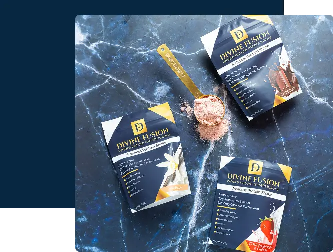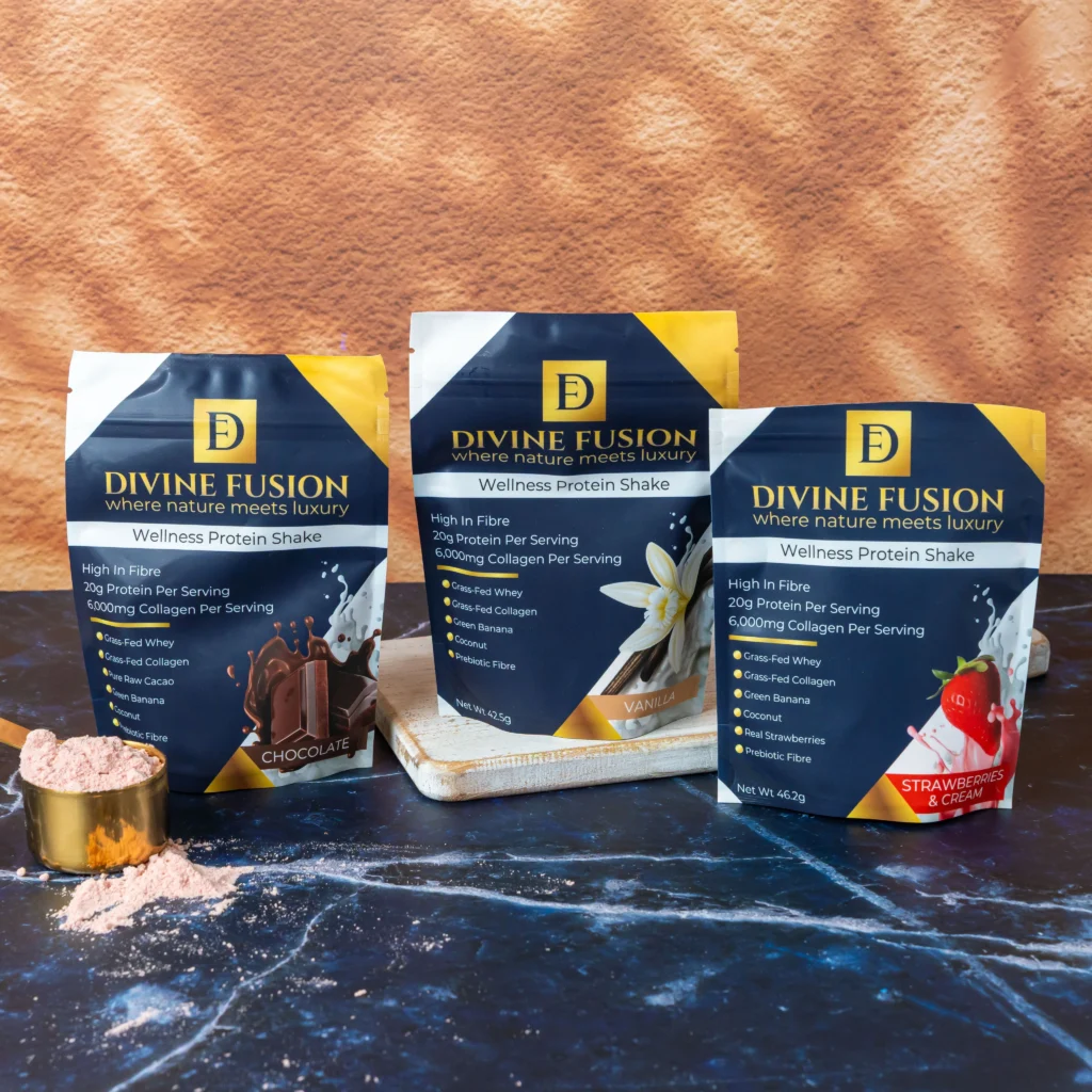 Most protein shakes give you protein. Divine Fusion gives you everything your body’s been asking for: Protein, Collagen, Fibre, Superfoods, and results you can see and feel.