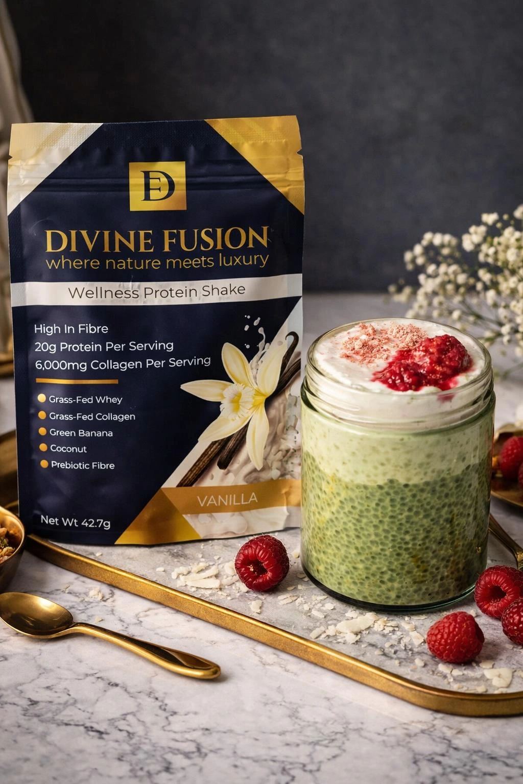 To make this recipe truly amazing, you can’t do without our Divine Fusion Chocolate Protein Wellness Shake