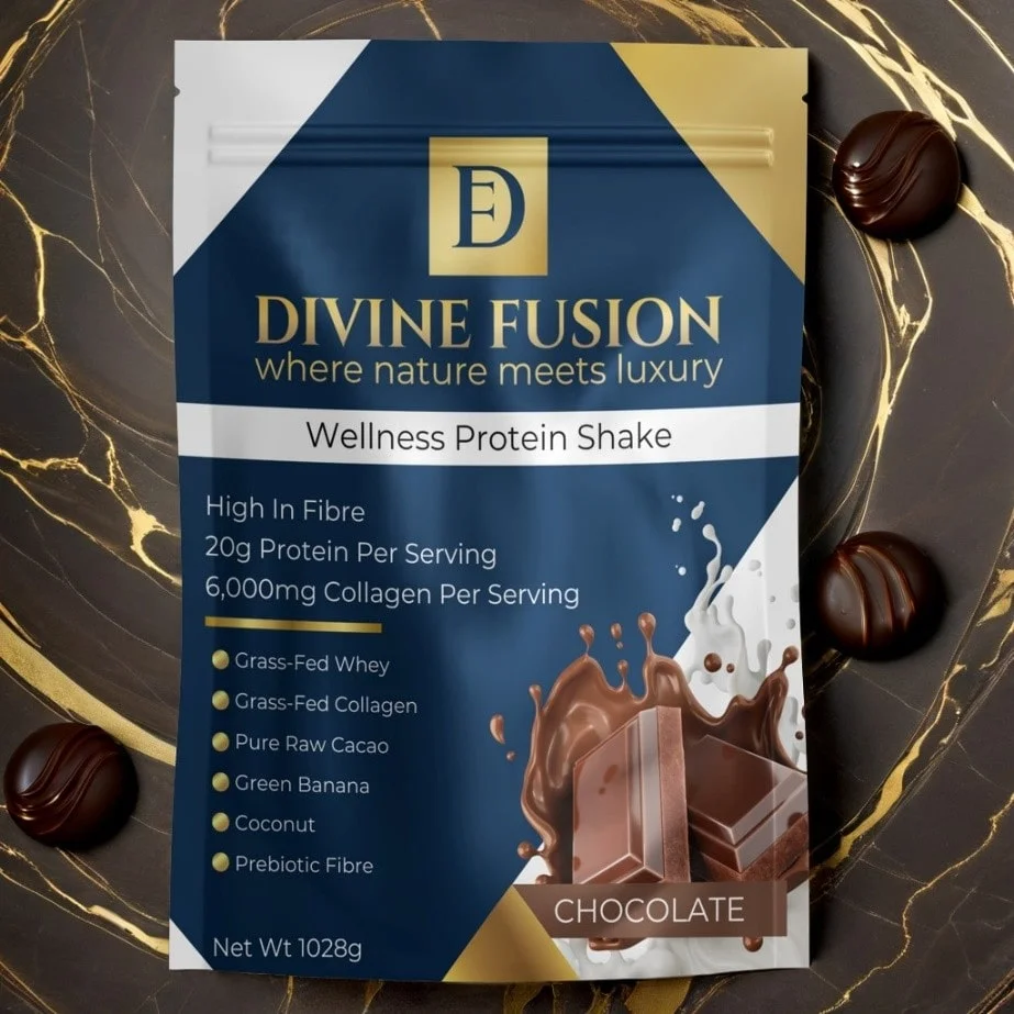 Experience the perfect fusion of luxury and nutrition with Divine Fusion Wellness Shakes – crafted with premium ingredients including grass-fed whey protein, grass fed collagen, prebiotics, and superfoods for a deliciously smooth, gut-friendly shake that supports muscle recovery, energy, and radiant health. Free from fillers, gums, artificial sweeteners, and GMOs, it’s clean, wholesome nutrition made easy – just mix and enjoy.